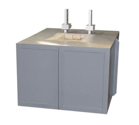 电极盐浴炉:通过金属电极将低压大电流交流电引入炉内,电流流过盐液发热。盐液既是发热体,又是对工件加热的介质。盐液温度依盐液成分而不同,一般在150~1300℃之间。磁场的作用能使盐液循环翻动,有利于盐液温度均匀,又能提高工件的加热速度。电极盐浴炉由电极、耐火炉衬、密封金属炉罐、绝热层和炉壳构成,由专用变压器供电。因固态盐不导电,开炉时先向启动电极送电,利用起动电极的电阻发热使一部分盐先熔化,然后接通主电极使电流通过熔盐发热工作。主电极有插入式和埋入式两种结构形式。